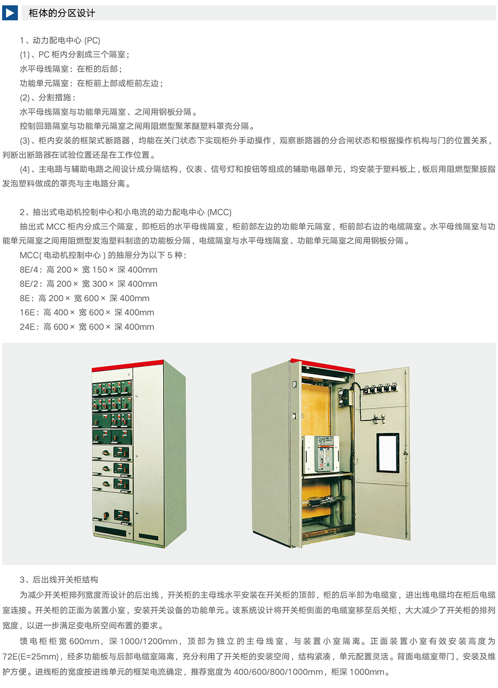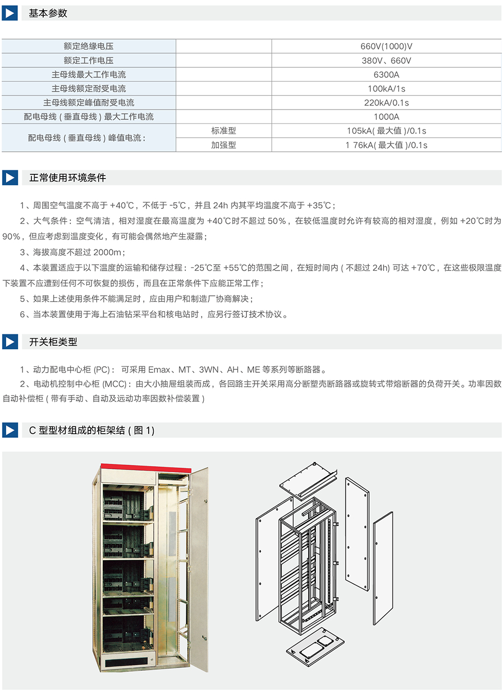 本系列低压抽出式开关柜适用于发电厂、变电站、石油化工、冶金轧钢、交通能源、轻工纺织等厂矿企业和住宅小区、高层建筑等场所、作为交流50~60Hz ,额定工作电压交流660V及以下的电力系统的配电设备的电能转换、分配及控制之用。本装置符合GB72511《低压成套开关关设备》及JB/T9961《低压抽出式成套开关设备》国家专业标准、并符合IEC439-1. VDE0660第五部分等国际专业标准。